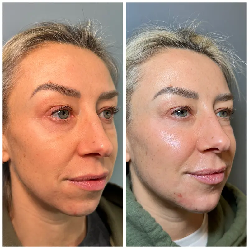 Post-procedure laser to reduce bruising and optimize skin pigmentation included.