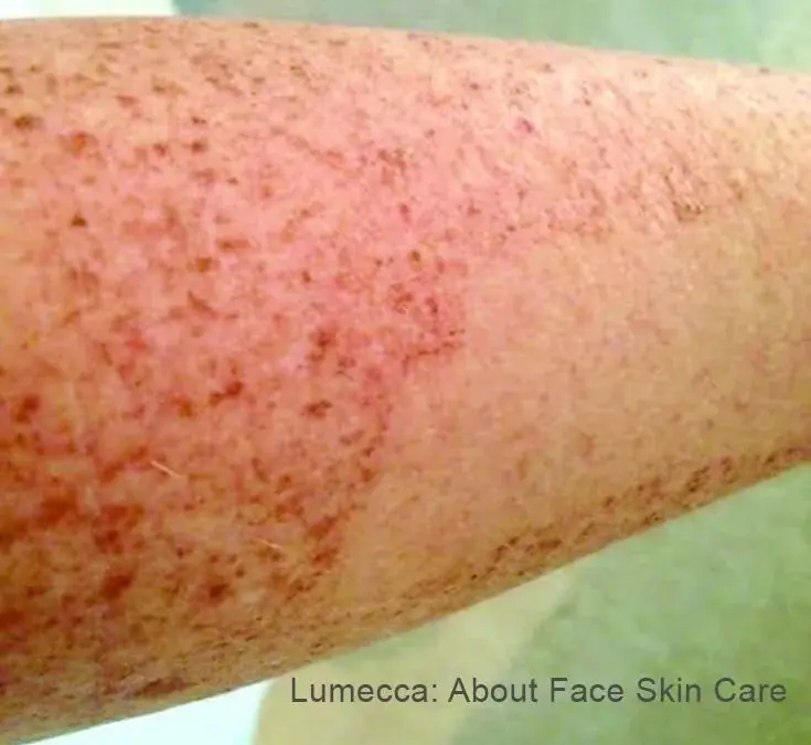During treatment there will be a bright flash of light from the Lumecca that feels like a light elastic sensation. Redness and a slight warming of the skin are normal after treatment and usually subsideswithin an hour. Over the next 24-48 hours you may see a darkening of pigmented spots; in the week afterwards, the pigmented lesions flake off, leading to an evening out of skin tone. After treating vascular lesions, you may see the vein blanch and disappear or a color change in the vessel which dissipates after a few days.